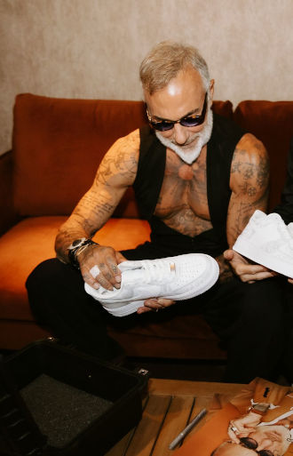 En el caso de Central Cee, considerado el rapero británico más influyente, las suyas son unas Air Jordan 4 de toque dorado y su nombre escrito a mano en el lateral. “Lo peculiar de esta pieza es que incorpora un NFC en la lengüeta para que, al acercar el móvil, se abra Spotify y suene una de sus canciones”, detalla David. Por último, el CEO de Newcop también destaca el modelo desarrollado para el DJ italiano Gianluca Vacchi, uno de los más famosos y virales del mundo con 22,5 millones de seguidores en Instagram. “Las suyas son una auténtica obra de arte. Sobre unas Nike Air Force 1, la sneaker básica por excelencia, pintamos a mano algunos de los tatuajes que luce en su cuerpo, y que representan objetos muy sentimentales para él”.